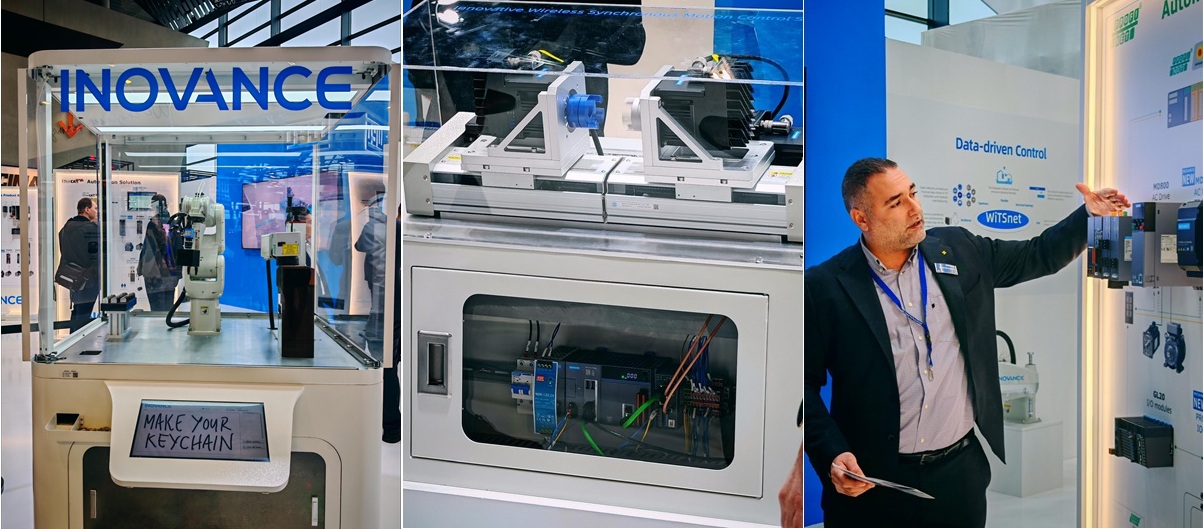 The Inovance stand at SPS 2025 showcased its Total Automation Solution, including the full automation line from AC drives, servos, motion, and HMIs to industrial robots, CNC, and associated software. Wireless real-time servo control will soon be added to the portfolio