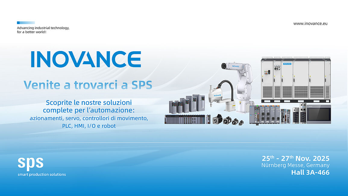 Inovance è un’azienda leader globale per le forniture di componenti e soluzioni di automazione industriale, fondata nel 2003. Offriamo l'intero portafoglio di componenti per l'automazione industriale, tra cui: azionamenti CA, servoazionamenti e motori, controllo del movimento, CNC, PLC e HMI. Il nostro team di ingegneri esperti copre tutti i settori industriali, dal tessile all'imballaggio, dalle gru agli ascensori.